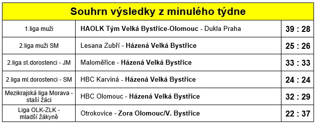 Muži: Lesana Zubří – Házená V. Bystřice 25 : 26 (11 : 18)