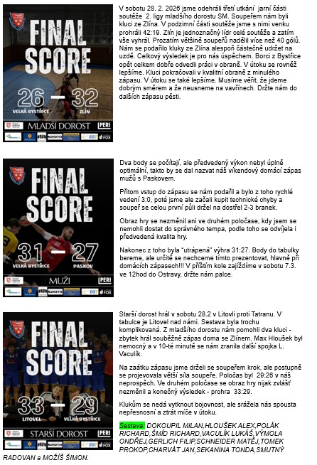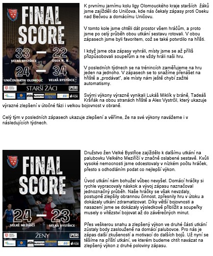 Házená Velká Bystřice