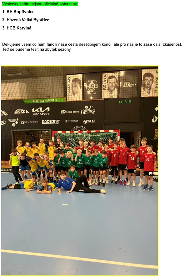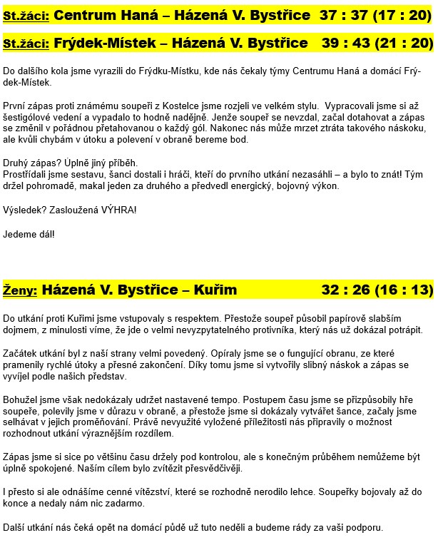 Házená Velká Bystřice